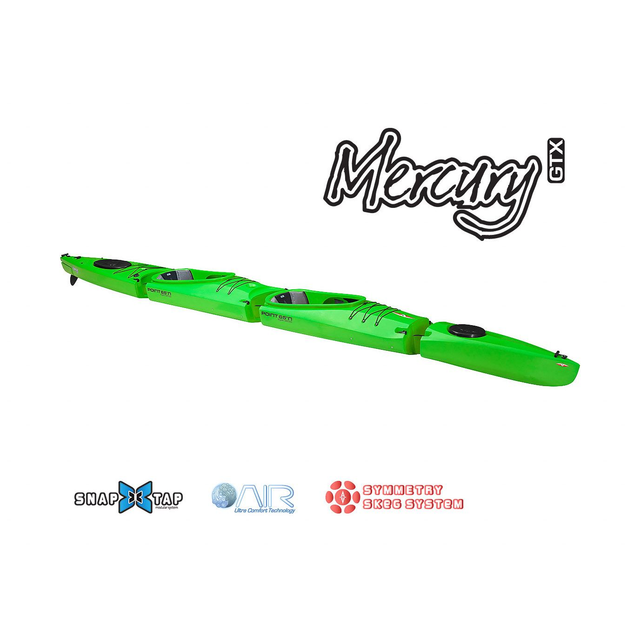 Das Mercury GTX ist die konsequente Weiterentwicklung des beliebten Point65 Martini. Es besteht aus drei Modulen, die sich dank des patentierten Snap-Tap-Systems blitzschnell zu einem 1er, 2er oder sogar 3er Kajak verbinden lassen. Besonders praktisch: Das Bugteil passt platzsparend ins Mittelteil – ideal für den Transport im Auto oder die Lagerung in der Wohnung.